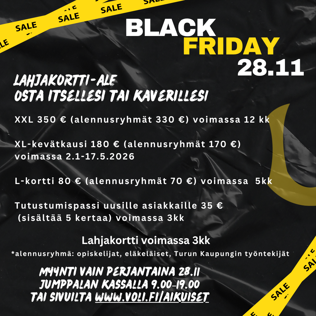 Maksathan laskun heti netin kautta ostetuista lahjakorteista BlackFridayna 28.11 vaikka tulisit hakemaan maksetun lahjakortin/kortin myöhemmin.