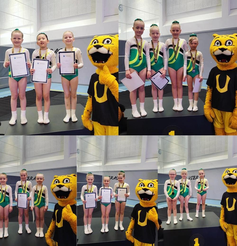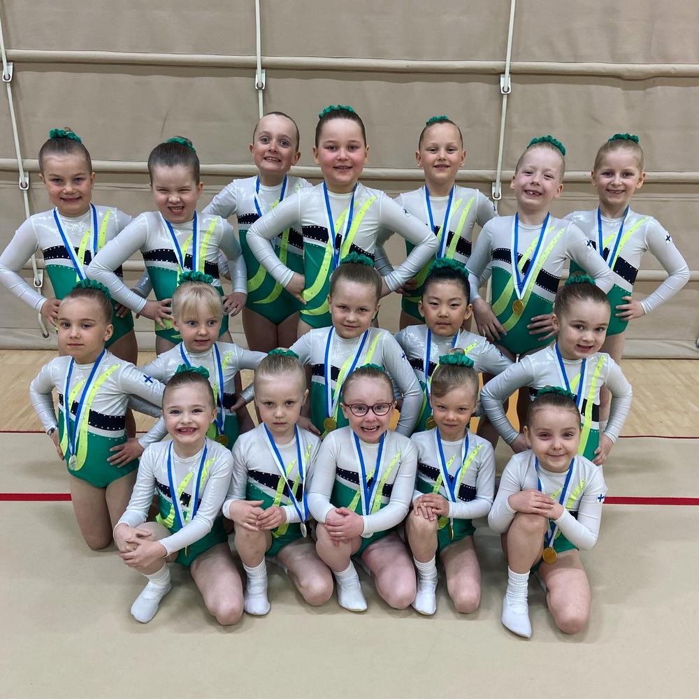 Harjoituksissa harjoitellaan perusliikuntataitoja sekä voimistelun ja kilpa-aerobicin perusteita. Harjoitukset ovat 3 kertaa viikossa 1,5-2h kerrallaan.